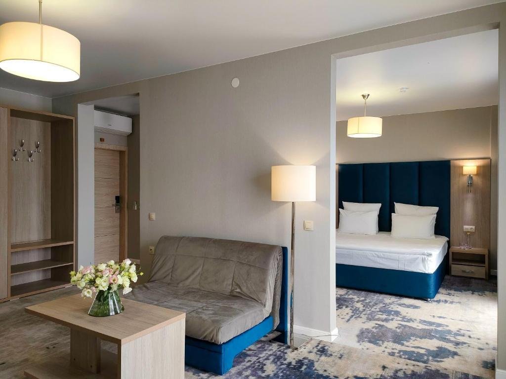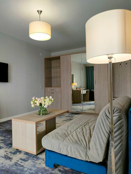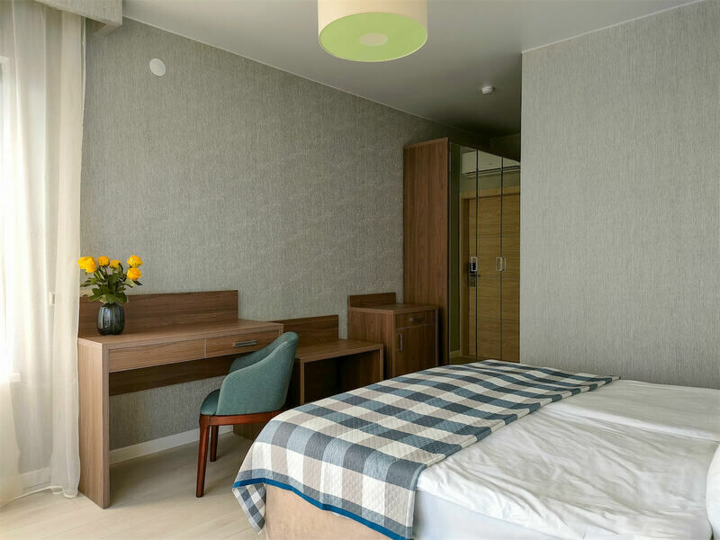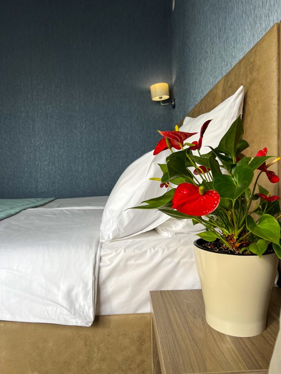 Номер стильный, современный. Стандарт, две кровати раздельных. Уборка отличная. В номере есть все необходимое, есть напольная сушилка, сейф, холодильник, чайник, халаты, тапочки, все принадлежности для душа так же есть, все супер!!