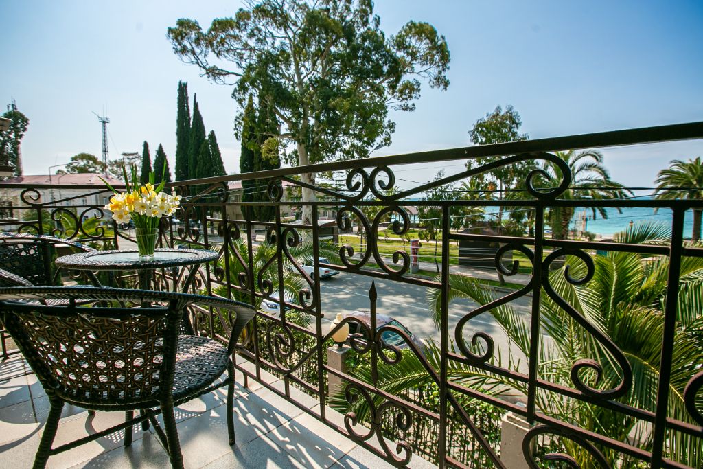 До пляжа можно дойти всего за 1 минуту. Этот отель находится в 50 метрах от берега Черного моря в Гаграх и располагает кафе и номерами с кондиционером и телевизором с плоским экраном. Крепость Абаата, построенная в 5 веке, расположена в 6 км.