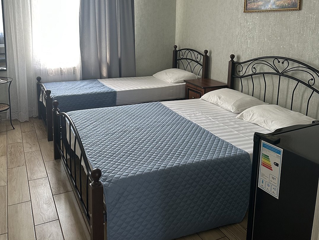 Четырехэтажный корпус отеля (без лифта) возвышается на закрытой охраняемой территории. Гостей ожидают 18 номеров категории Стандарт, рассчитанных на 2-х и 3-х местное размещение. В номерах есть необходимая мебель, собственный санузел с душем и бытовая техника — кондиционер, телевизор, холодильник. В некоторых комнатах предусмотрен балкон.