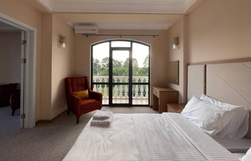 К размещению гостей представлены комфортабельные номера, которые имеют все необходимое: удобную мебель, кондиционер, холодильник, телевизор, бесплатный Wi-Fi, отдельный санузел с душевой. Также в отеле находится своя кухня, бар и охраняемая парковка. Различные зоны для комфортного отдыха у открытого подогреваемого бассейна, холл с наличием телевизоров, фортепиано и баром. Рядом располагается парк для активного и более спокойного времяпрепровождения.