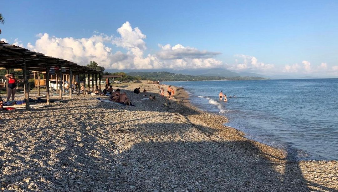 Поездом или самолетом – до г. Сочи (Адлер), далее на общественном транспорте или на такси до «Казачьего рынка» (8 км от ж/д вокзала, 15 км от аэропорта), затем пройти пешком около 500 м до пограничного поста на р. Псоу до границы России и Абхазии. После самостоятельного прохождения паспортного и таможенного контроля до места отдыха можно доехать на автобусе, маршрутном такси или воспользоваться услугами частных водителей.