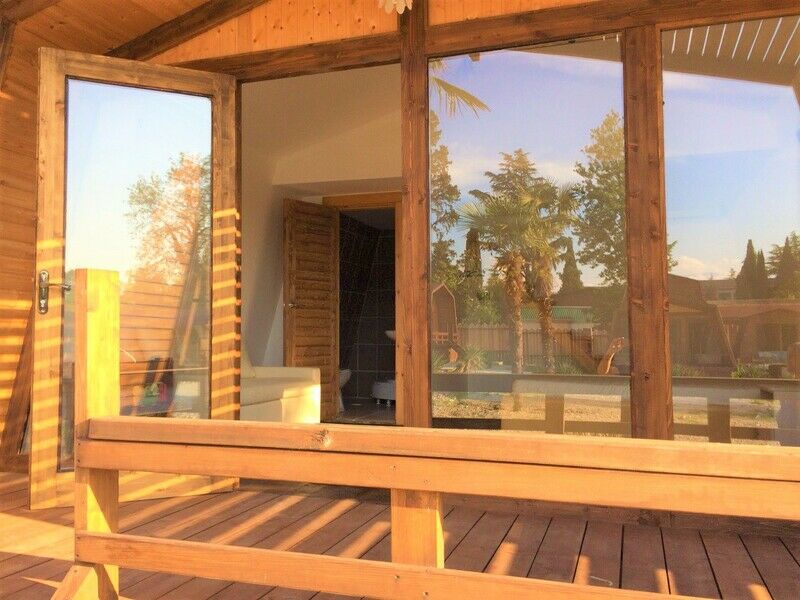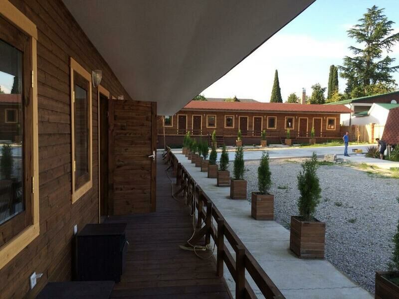 Собственная территория комплекса отгорожена и ухожена, на ней много приятных уголков и зон отдыха. 29 одноэтажных коттеджей, построенные из натурального дерева и экологически чистых материалов, способны одновременно принять около 70 гостей. Они оборудованы санузлами с душем, необходимым набором бытовой техники и сейфами. Вода в номерах – с лечебным эффектом из сероводородного источника и имеет характерный запах.