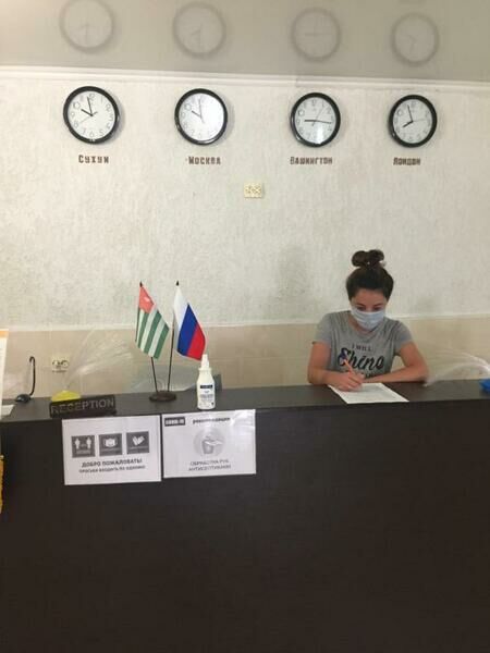 Нам при регистрации сразу выдали ключи и пригласили сотрудницу Мзию для заселения, мы в ее присутствии приняли номер, вопросов никаких у нас не возникло, в номере чисто, есть туал. бумага, мыло, шампунь, в номере пахло деревом. Номер просторный, санузел очень просторный, у наш еще вошло кресло в него и журнальный столик для при пляжных принадлежностей (соседи уезжали и одарили нас)))