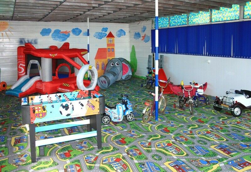 Для детей есть батут, детская площадка, теннис, кинотеатр, для взрослых дискотека.