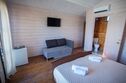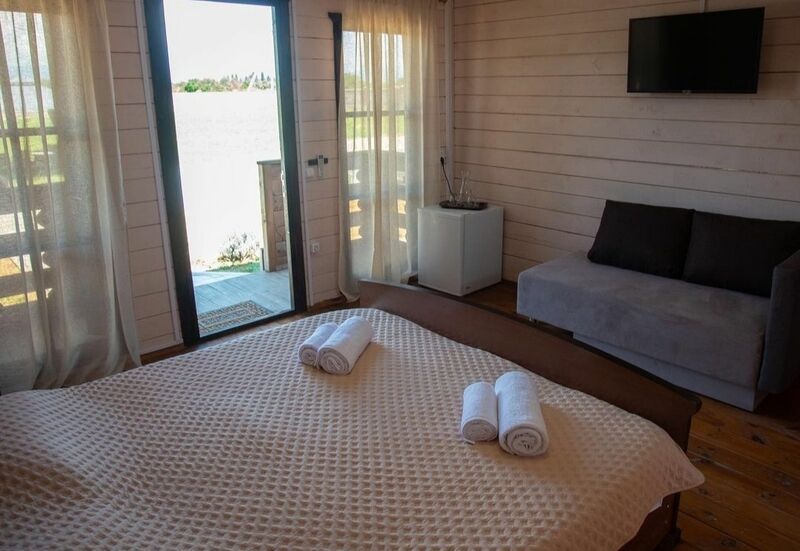Оборудованный частный пляж, который находится в четырёх минутах ходьбы. Каждый домик оснащён санузлом, ТВ, сплит-системой, мини холодильником, wi-fi.