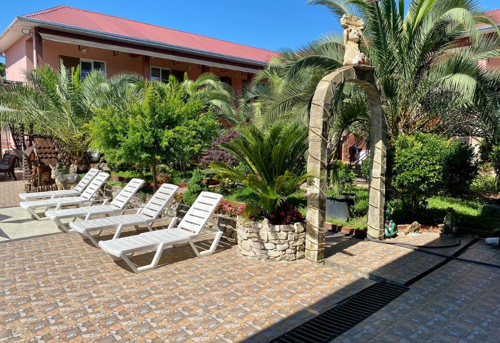 Отель "Розовый Фламинго" расположен в 400 метрах от моря. Во дворе имеется большой подогреваемый бассейн, барбекю зона, беседки, детская площадка, а также настольный теннис, зона для загара с шезлонгами, к услугам гостей бесплатная автостоянка, и бесплатный Wi-Fi, также на территории отеля имеется кухонная зона.
