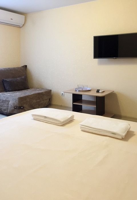 ТВ, кондиционер, холодильник, санузел рядом с номером, закрывается на ключ (с/у, только для проживающих данного номера)