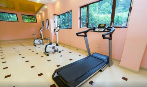 Тренажерный зал находится на 2 этаже, имеет большой выбор тренажёров для повышения выносливости, улучшения работы дыхательной, кровеносной и нервной систем.