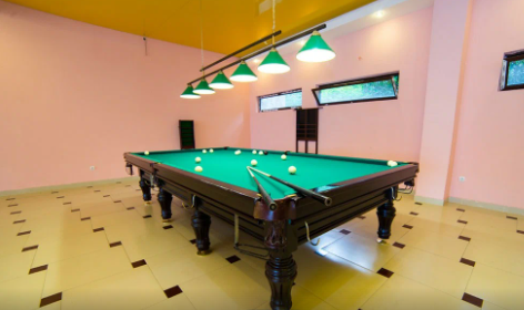 Для любителей поиграть в бильярд в пансионате есть оборудованная комната, в которой установлены бильярдные столы, над которыми на цепях подвешены специальные светильники.
