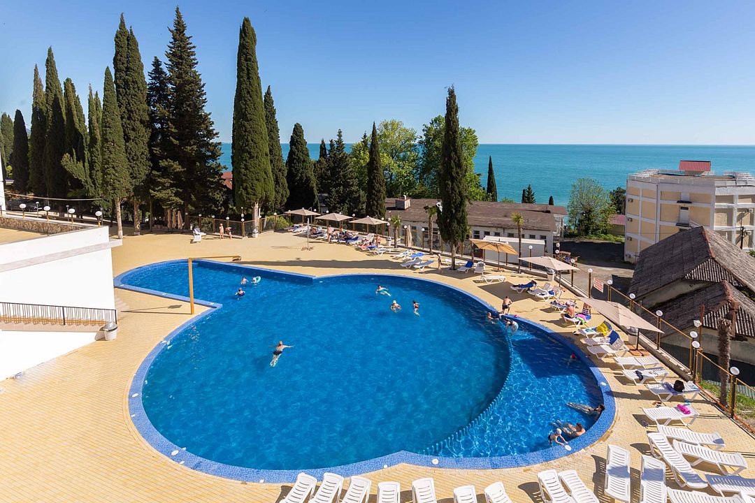 На территории пансионата имеется бассейн, который могут посещать как взрослые, так и дети, благодаря детской зоне.