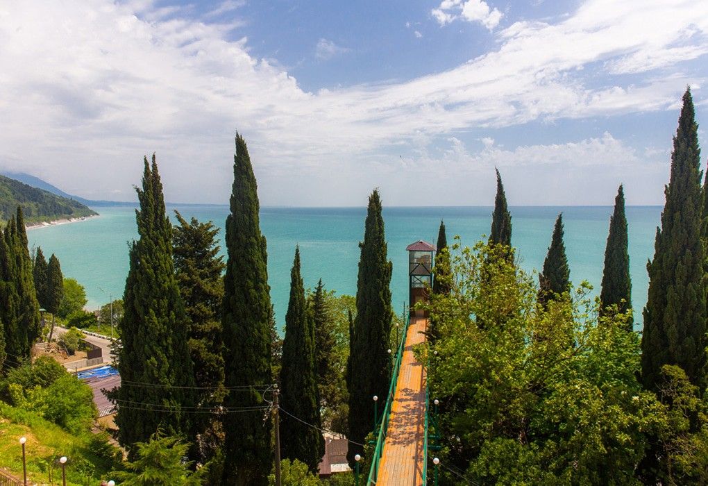 Поездом или самолетом – до г. Сочи (Адлер), далее на общественном транспорте или на такси до «Казачьего рынка» (8 км от ж/д вокзала, 15 км от аэропорта), затем пройти пешком около 500 м до пограничного поста на р. Псоу до границы России и Абхазии. После самостоятельного прохождения паспортного и таможенного контроля до места отдыха можно доехать на автобусе, маршрутном такси или воспользоваться услугами частных водителей.
