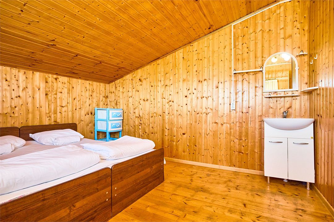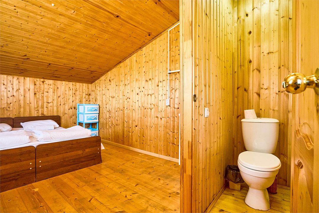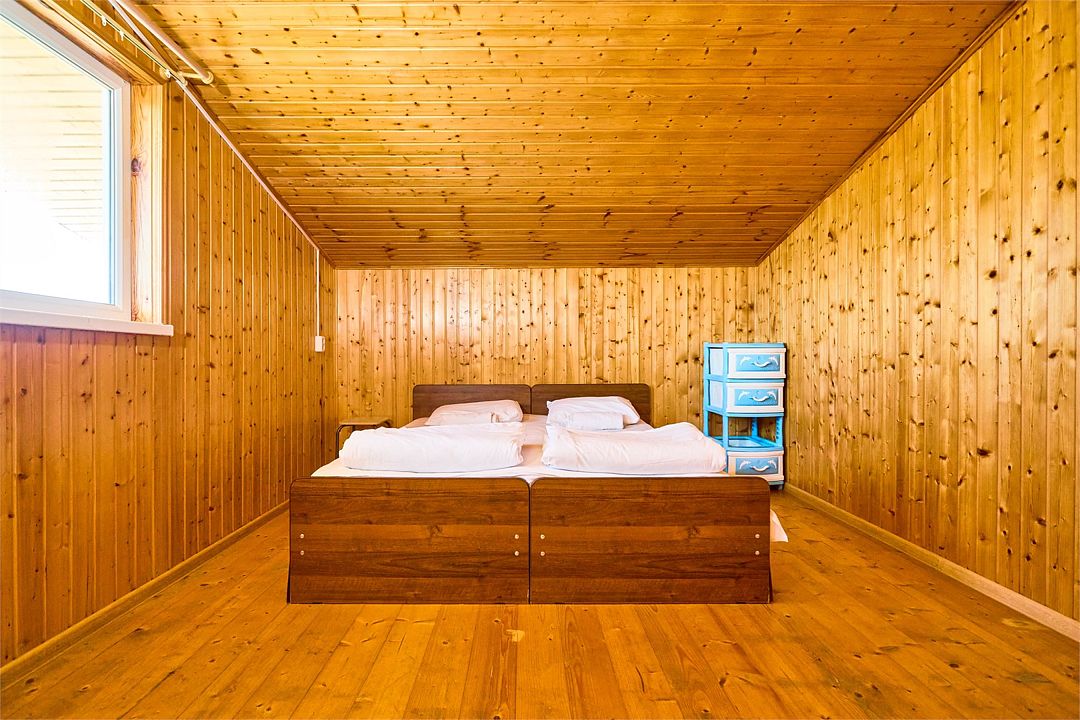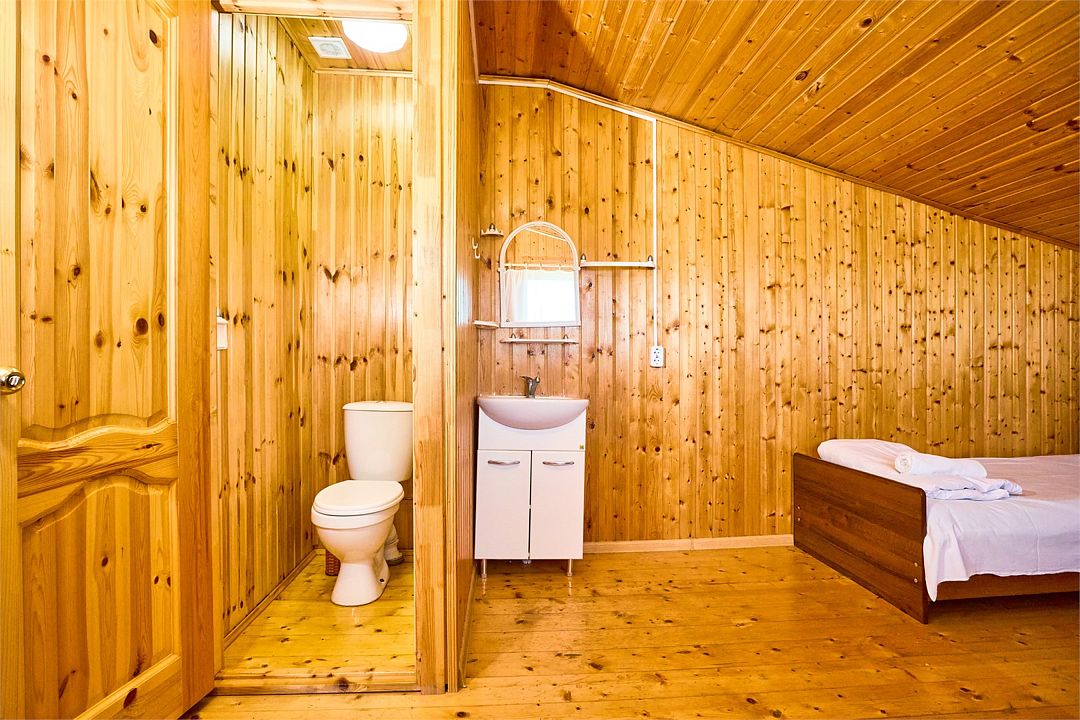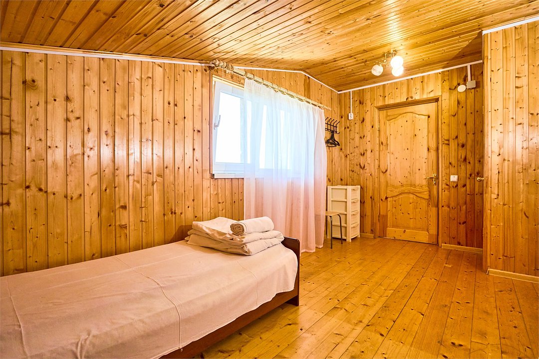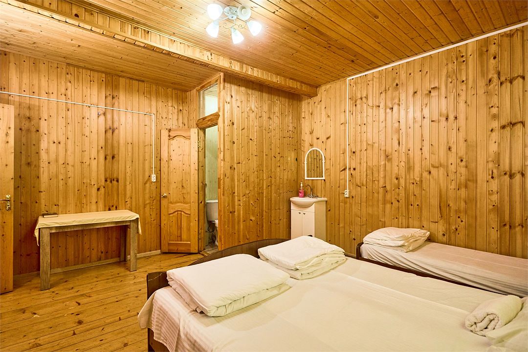 На втором этаже находятся номера, в каждом из которых есть две односпальные кровати, стол, стулья, холодильник, тумбочка и раковина. Также в номере есть зеркало. Санузел в номере отдельный. Душ общий и находится на первом этаже. Кондиционер в номере не предусмотрен. Интерьер выполнен в деревянном стиле.Двухместный стандарт