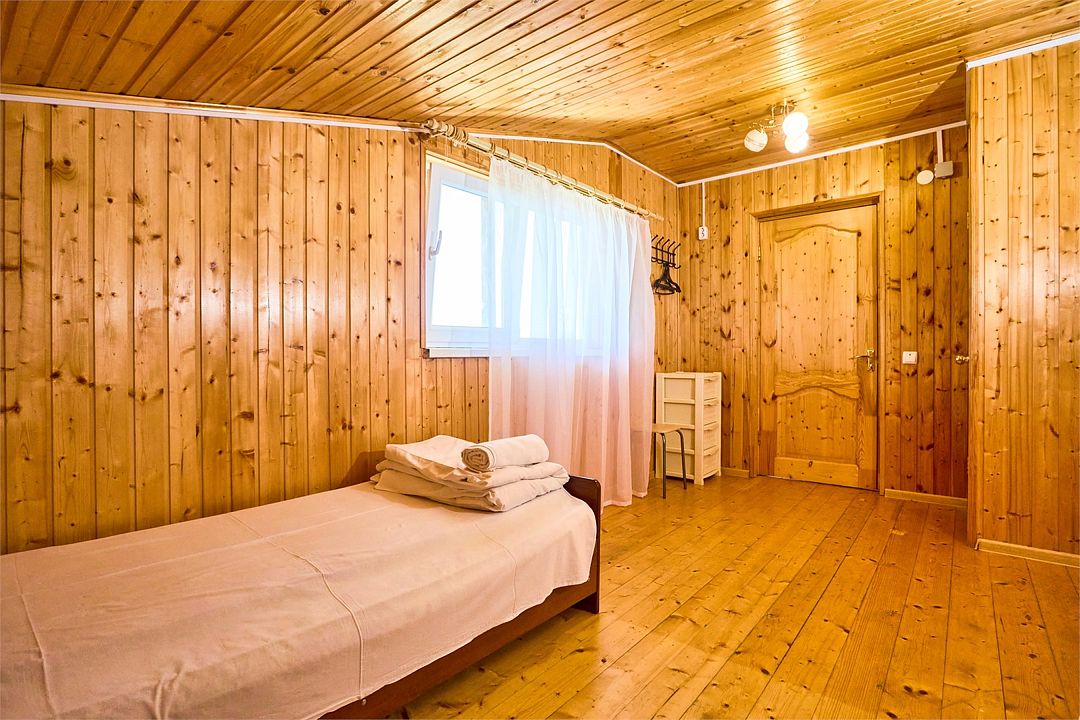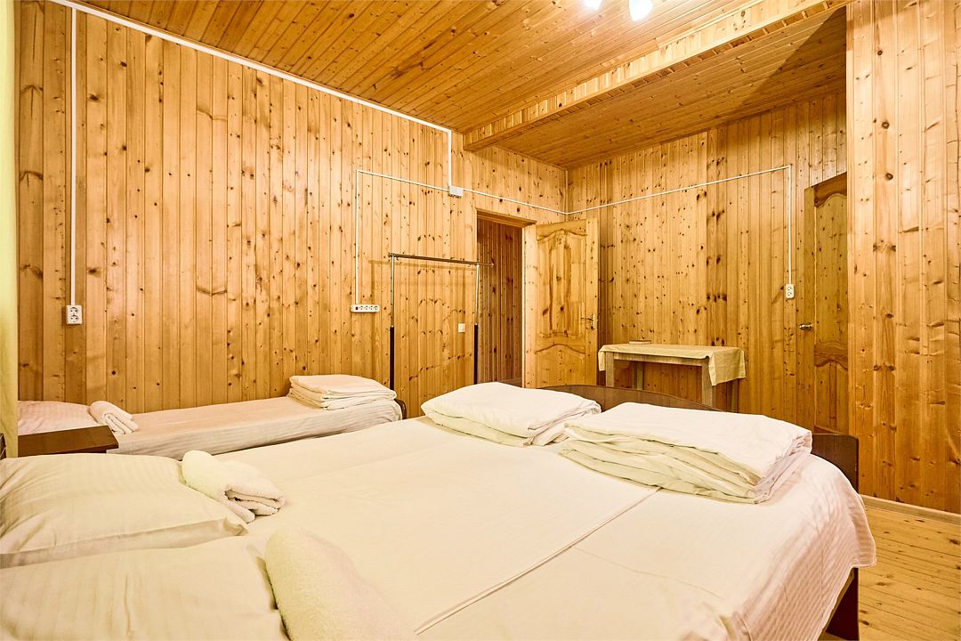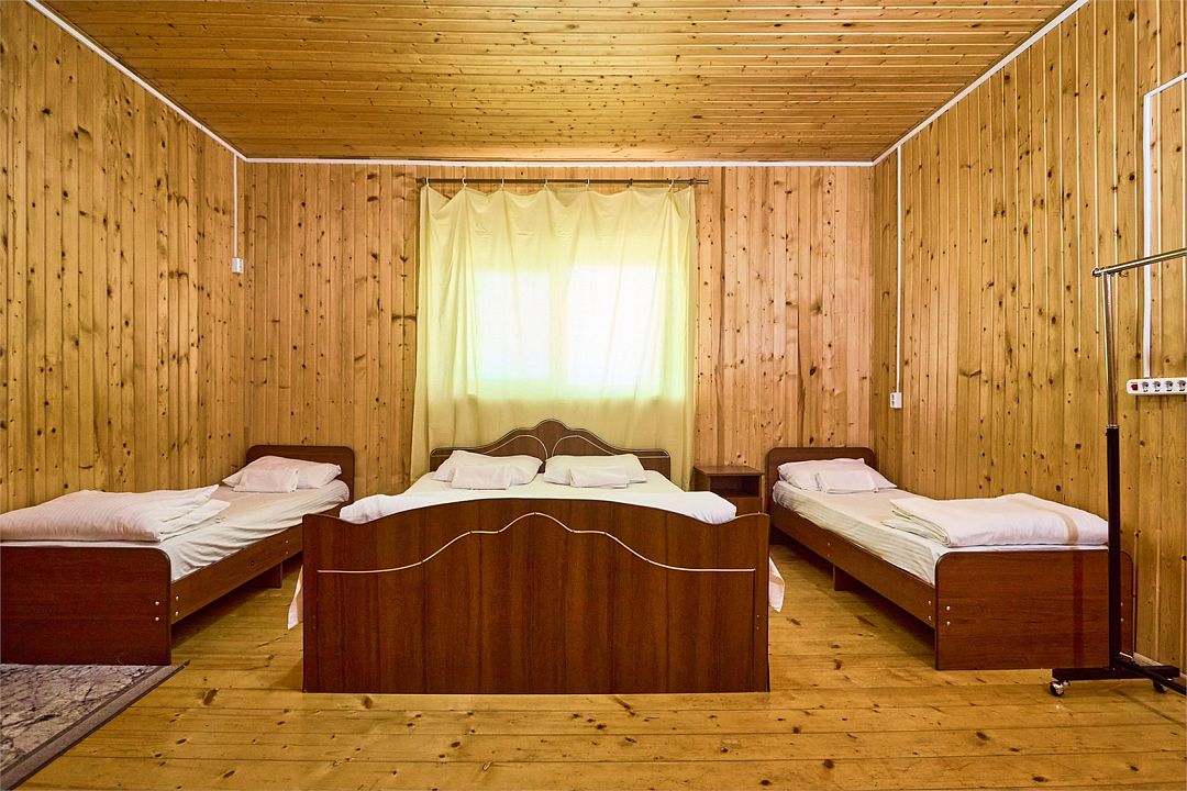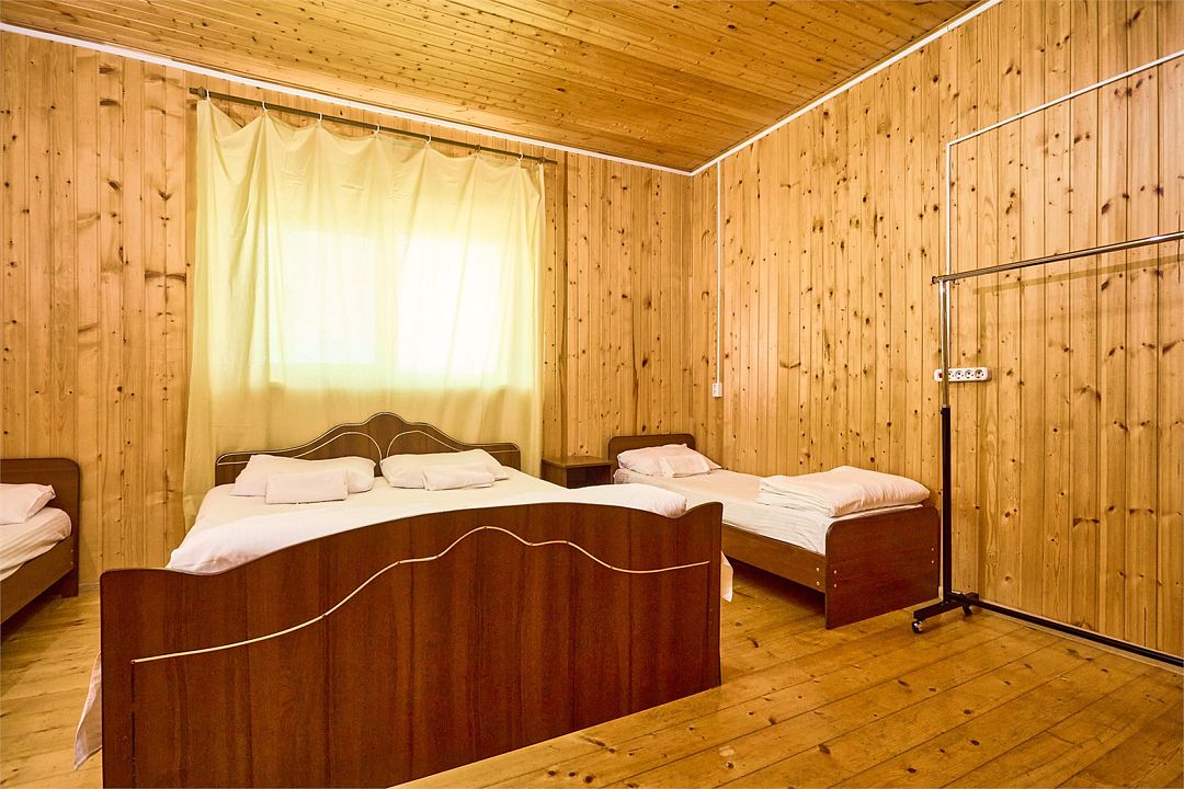 В номере есть двуспальная и две односпальные кровати, а также стулья. Из мебели также предусмотрены холодильник, тумбочка, кондиционер. Санузел оборудован душем. В номере есть стол, раковина, зеркало, вешалка. Интерьер выполнен из дерева.Или нужно забронировать сразу несколько номеров? Вы можете оставить письменную заявку и мы поможем составить бронирование на основе Ваших особых пожеланий.