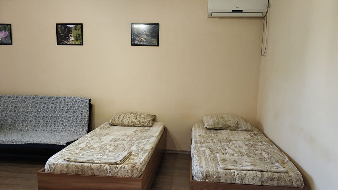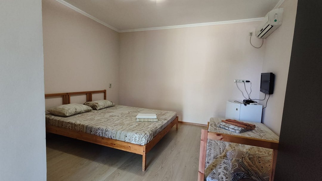 Трёхместный номер с тремя раздельными кроватями. Оснащённый собственным санузлом, кондиционером, телевизором, холодильником. Расположен на первом этаже с отдельным входом