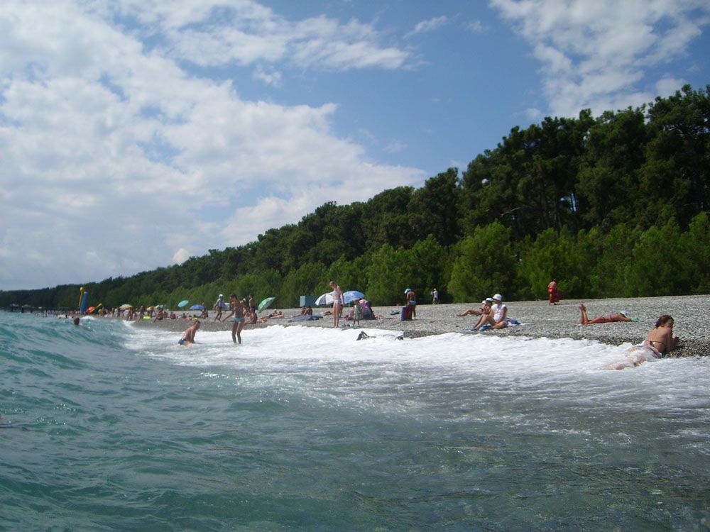 Поездом или самолетом – до г. Адлер, далее на общественном транспорте или на такси до «Казачьего рынка» (8 км от ж/д вокзала, 15 км от аэропорта), затем пройти пешком около 500 метров до пограничного поста на р.«Псоу» до границы России и Абхазии. После самостоятельного прохождения паспортного и таможенного контроля до места отдыха можно доехать на автобусе, маршрутном такси или воспользоваться услугами частных водителей