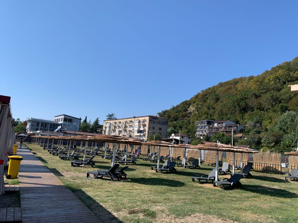 На наш взгляд, пансионат вполне заслуживает твердые 4 звезды (хотя формально не имеет ни одной). Если оценивать по 10-бальной системе, то Территория —10 баллов (розы, олеандры, вековые камфорные лавры, бамбуковая роща, мандариновые и инжирные деревья, родники, садовая мебель, отличная детская площадка, гамаки, турники, фонтан). Размещение — 10 (просторные номера со свежим ремонтом и огромным балконом, все работает, а халаты в «люксах» лучше тех, что выдают в Турции). Питание — 9+ (разнообразный шведский стол, сытно, всегда есть мясо, свежие фрукты, лично нам не хватало в меню только сладкой выпечки типа оладий, блинов, булочек, но это уже на любителя). Расположение — 10 (до моря 10-12 минут неспешного хода по тенистой аллее из вековых деревьев самых разных пород), при этом желающие могут взять в пансионате пляжный зонт на весь срок пребывания в пансионате, оставив в залог 1 тыс. рублей, деньги вернут при выезде).