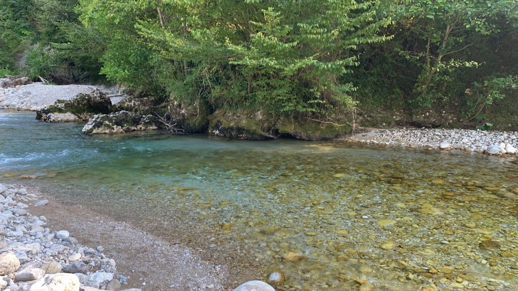 Вправо пойдёте то через 10-15 минут(смотря кто как ходит) окажетесь в прекраснейшем месте-заповеднике.Там вдоль побережья в несколько киломметров растёт длинохвойная пицундская сосна.Целебный,опьяняющий воздух вам гарантирован!В самую жару можно расположиться под этими чудо-соснами,полежать и даже вздремнуть.