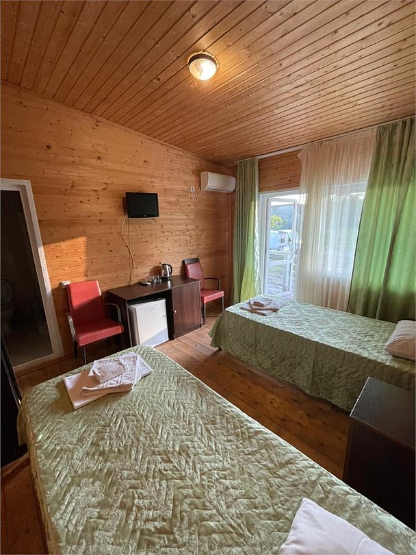 Коттедж расположен в 30 м от моря. Уборка номера ежедневно. Каждый третий день смена полотенец. Каждый пятый день смена белья.Услуги и удобства