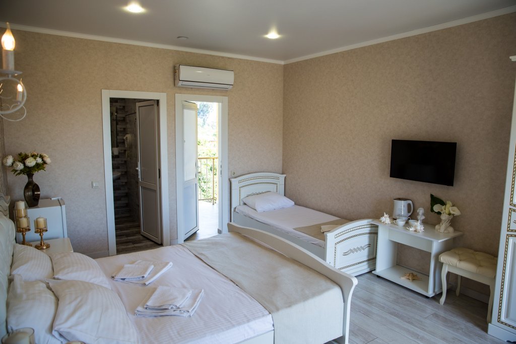 На основании Постановления Кабинета Министров Республики Абхазия от 13 октября 2023 года Nº106 «Об утверждении Порядка осуществления учета иностранных граждан и лиц без гражданства по месту временного пребывания на территории Республики Абхазия», которое вступило в силу 01 января 2024 г. вводится единоразовый регистрационный сбор с каждого иностранного гостя, временно (более четырнадцати суток) пребывающего на территории Республики Абхазия. Размер сбора составляет 200.00 RUB с человека вне зависимости от возраста. Оплата производится гостями на месте при заселении, наличным платежом. Для подтверждения бронирования необходимо связаться с представителем отеля и в течение суток внести предоплату в размере стоимости 2 ночей. Контактная информация указана в подтверждении бронирования. В номерах «Улучшенный номер в Эко-корпусе», «Улучшенный трёхместный номер в главном корпусе» и «Улучшенный номер с видом на море в Эко-корпусе» за доплату возможно размещение 4 гостя (ребенок до 14 лет).