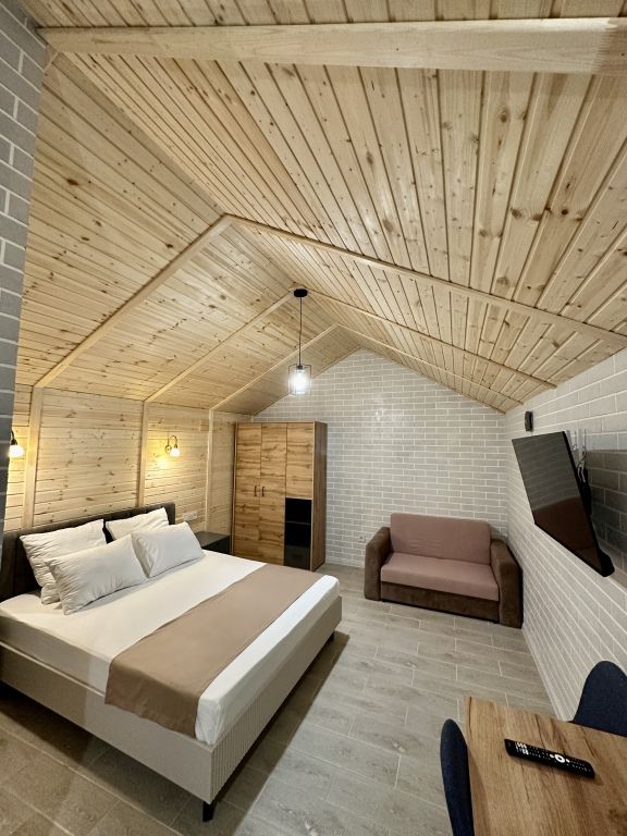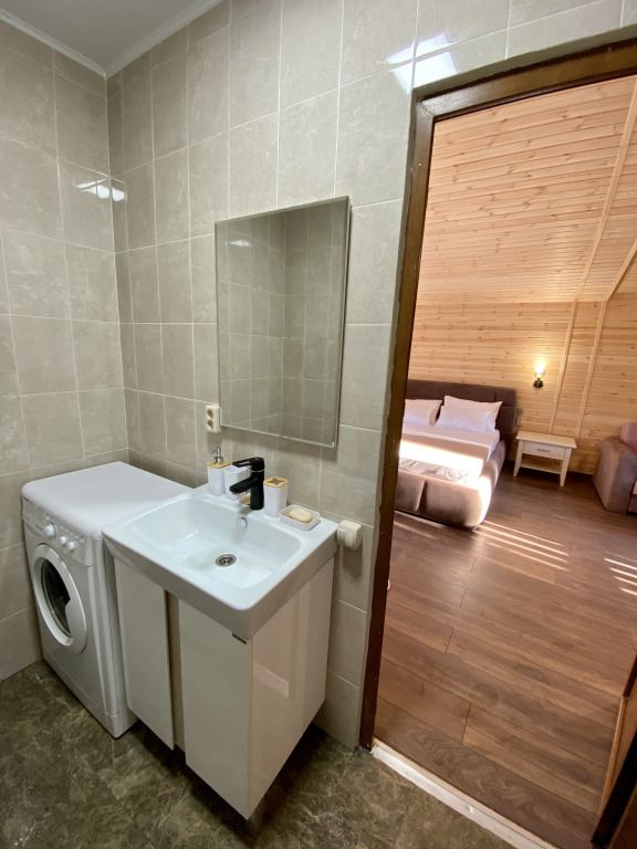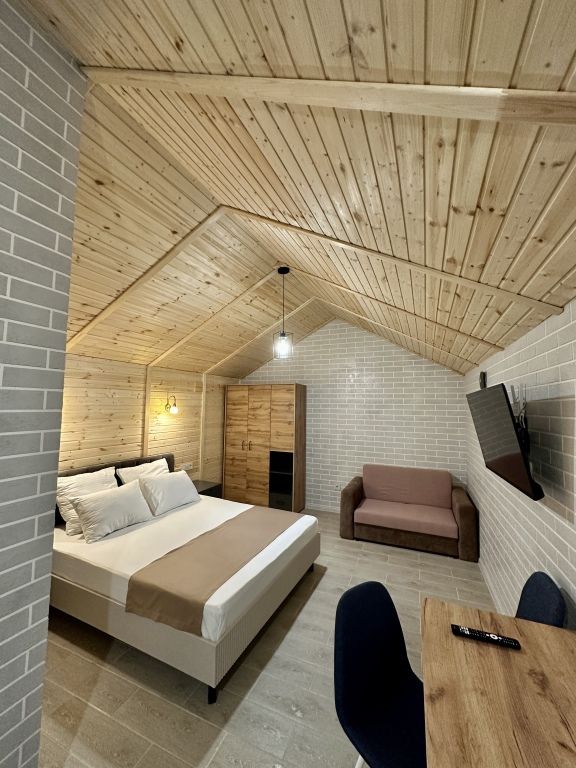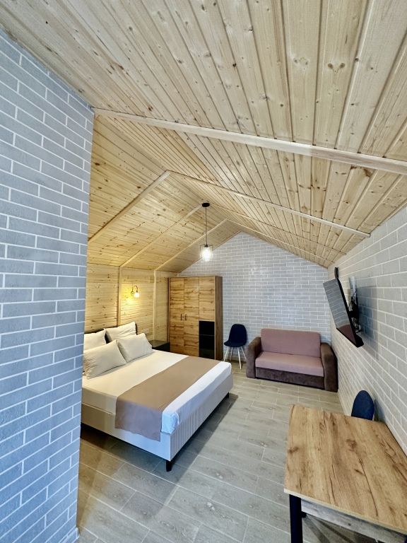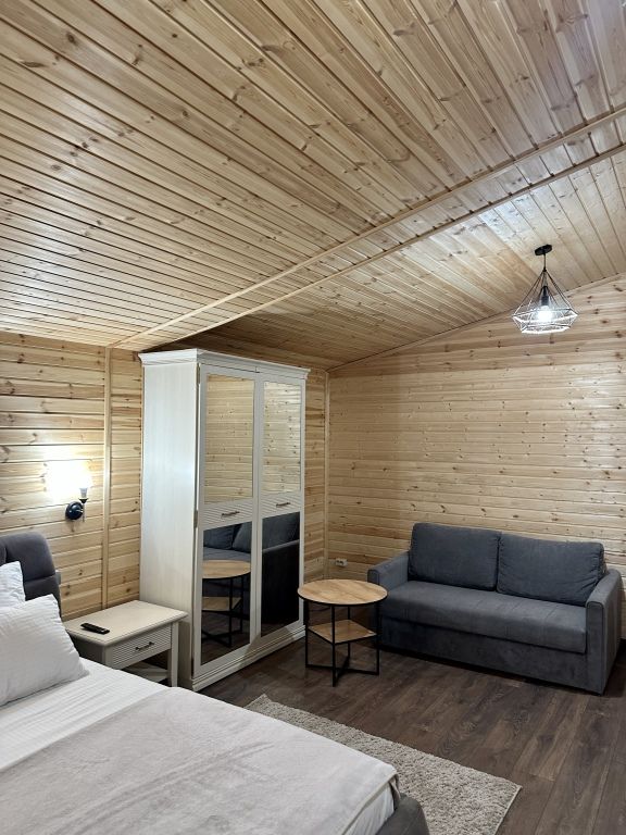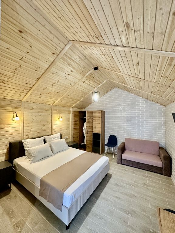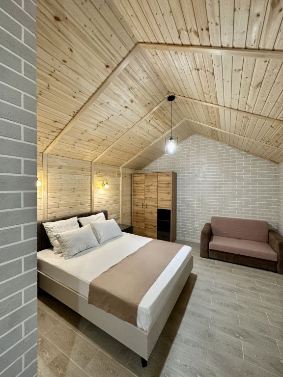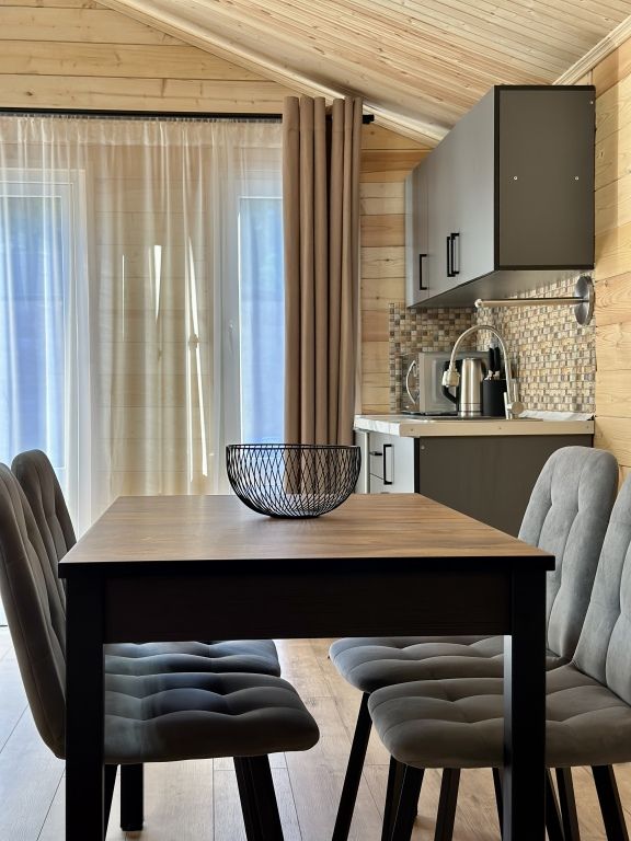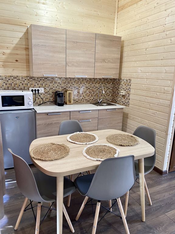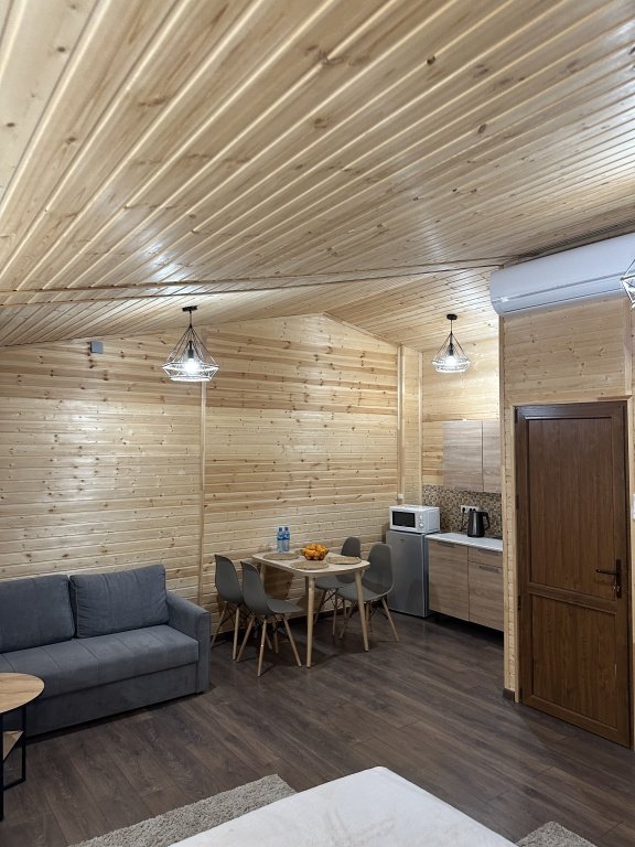 Путешествие с семьейСамый удобный коттеджПотрясающий коттедж! Все новое, чистое: супер-удобная кровать, есть шкафы, кофемашина, чайник, кухня, детям можно разогреть еду в микроволновке. Очень удобно, что была стиралка, на отдыхе это прям очень удобно, особенно с детьми. Вечерами чилили в беседке, я с шампусиком, муж с кальяном, часто заказывали еду из кафешки за стеной, так как один владелец, нам делали доставку. В общем отпуск удался, и поплавали и погуляли и наш домик у моря порадовал!