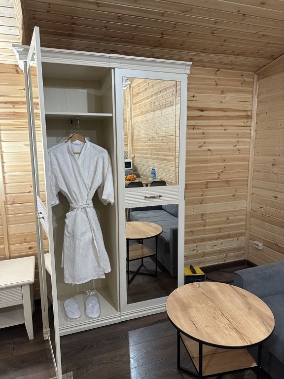 Чтобы вы могли отдохнуть после долгого дня, в номере есть телевизор и халат. Перечисленные услуги есть не во всех номерах.