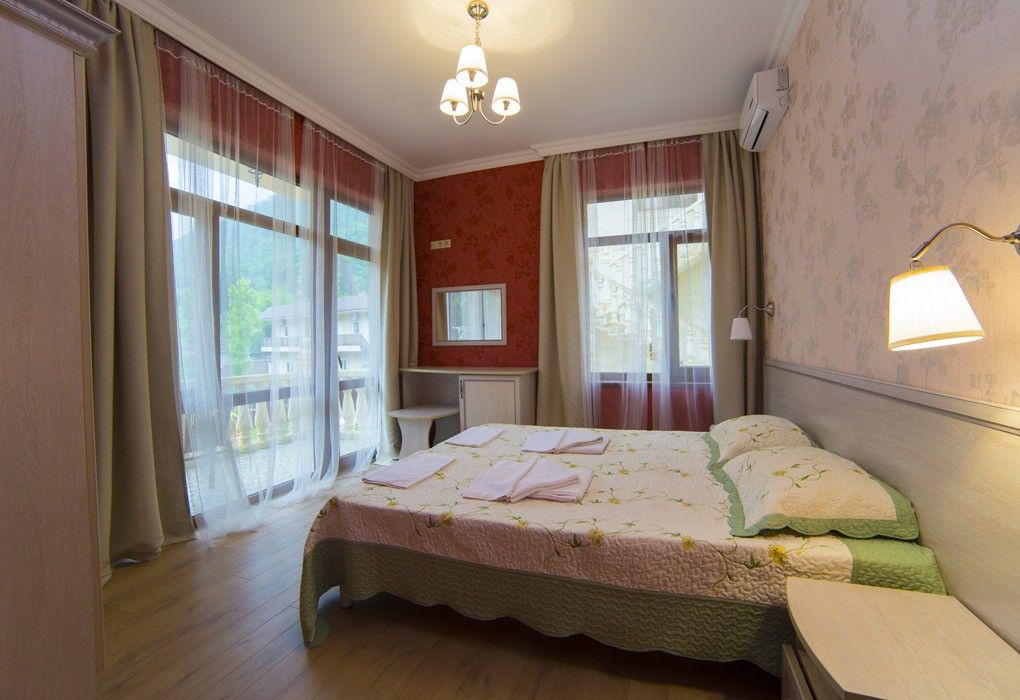 В 99 км от ж/д вокзала или аэропорта г. Адлер, в 83 км от Российско-Абхазской границы.