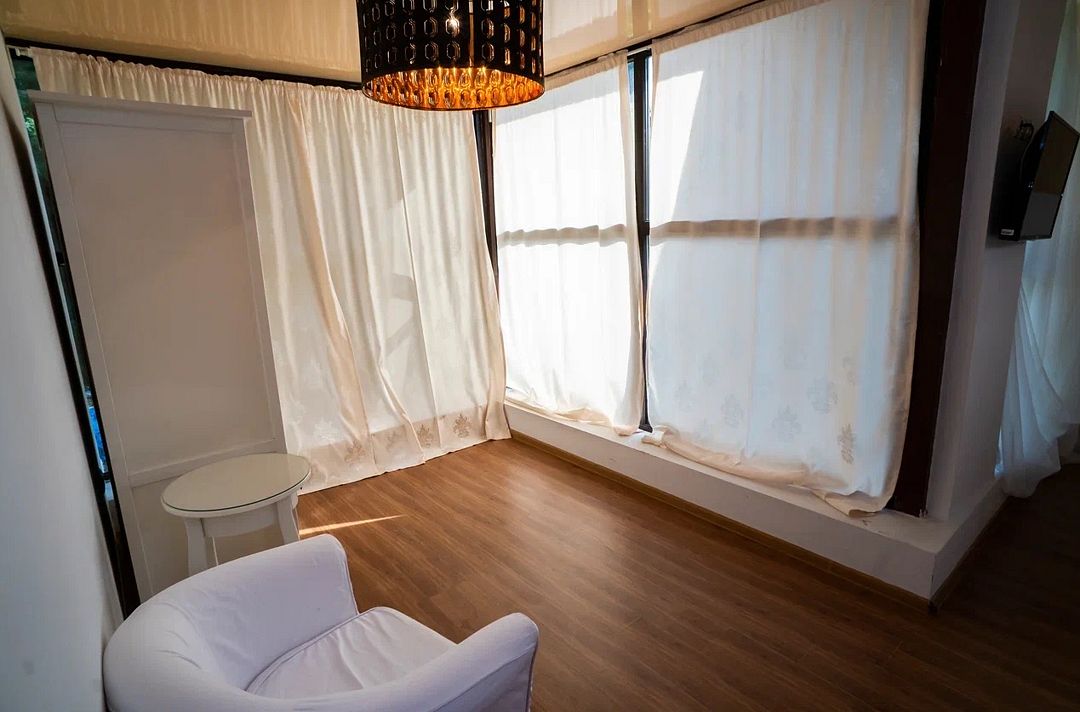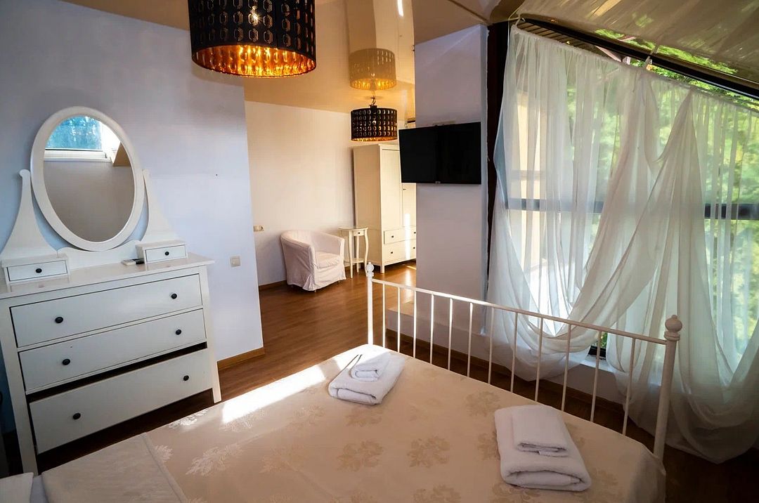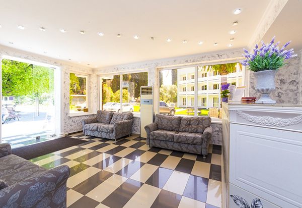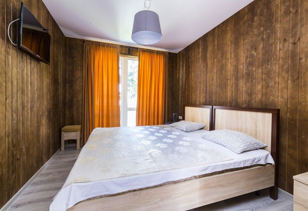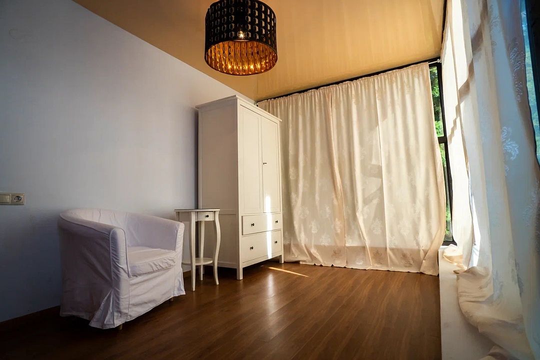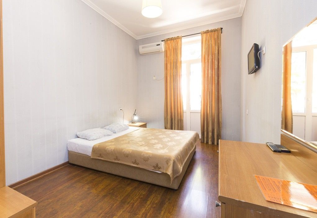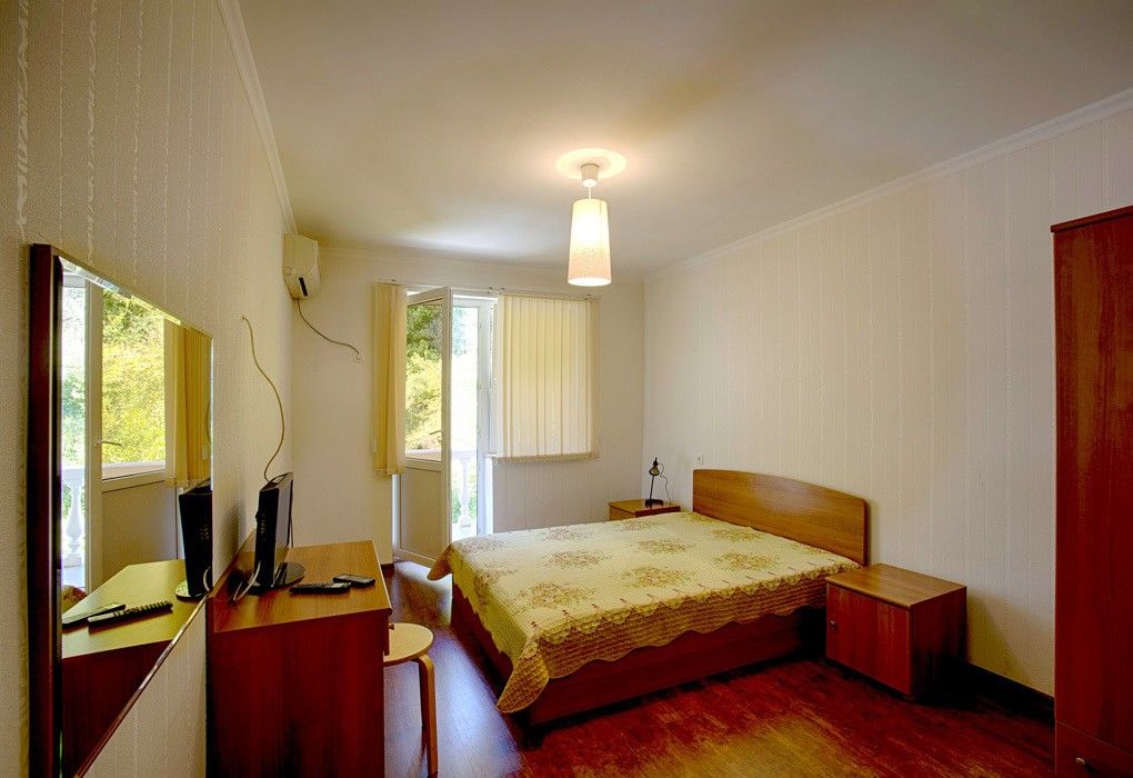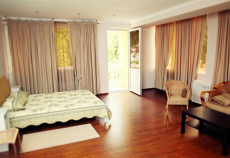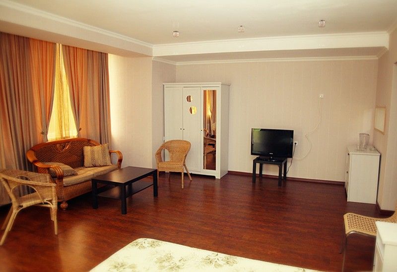 В жилом фонде гостиницы «Водопад» в Новом Афоне – номера разных категорий: от «стандарта» до «люкса». Кондиционеры, телевизоры и холодильники есть в каждом из них – так же, как удобная мебель приятных расцветок. Обстановка в номерах привлекает изысканной простотой и лаконичностью, а «люкс» выглядит роскошно и стильно.