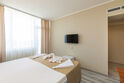 Одним из главных преимуществ отеля является прекрасный вид с балкона номера на море или горы. В номерах - современная мебель, санузел, телевизор, холодильник.