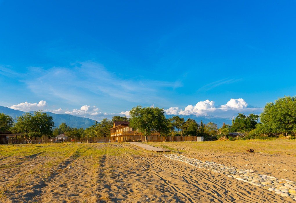 В 57 км от ж/д вокзала или аэропорта г. Адлер, в 41 км от Российско-Абхазской границы.