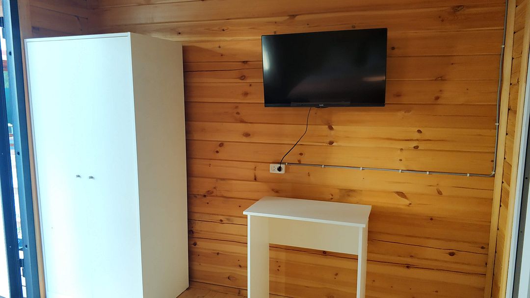 Оснащён: кондиционером, ТВ, Wi-Fi, холодильником, санузлом, чайником, феном. Выдается полотенце, туалетная бумага и мыло.