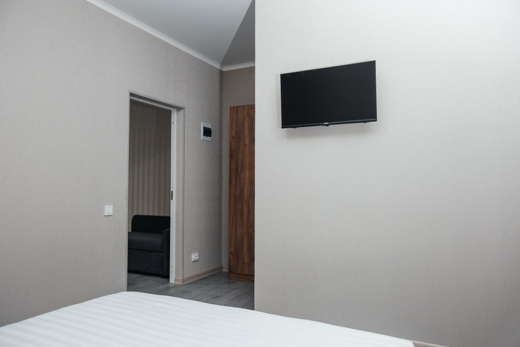 В номере вас будет ждать телевизор. Оснащение зависит от выбранной категории номера.