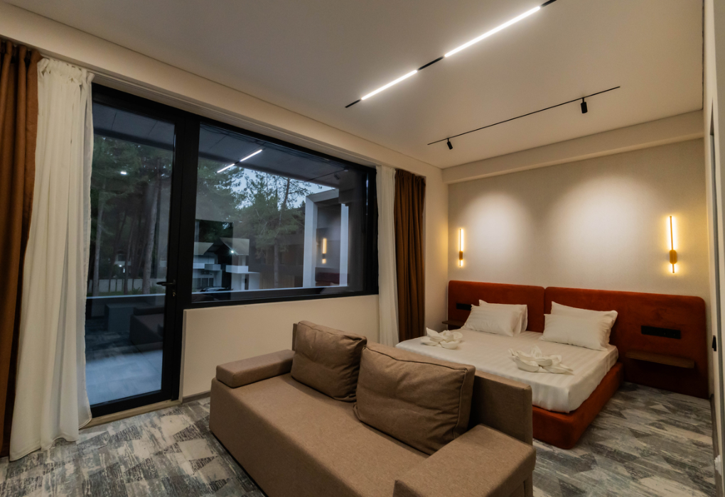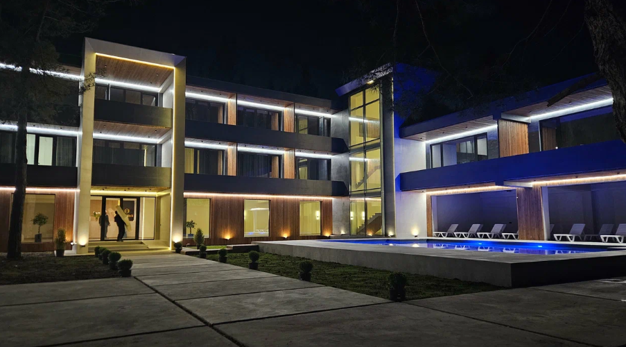Отель «Guma» - это новый отель, расположенный в центре города Пицунда. Он находится в живописной местности среди реликтовой сосновой рощи, а его дизайн выполнен в стиле хай-тек.