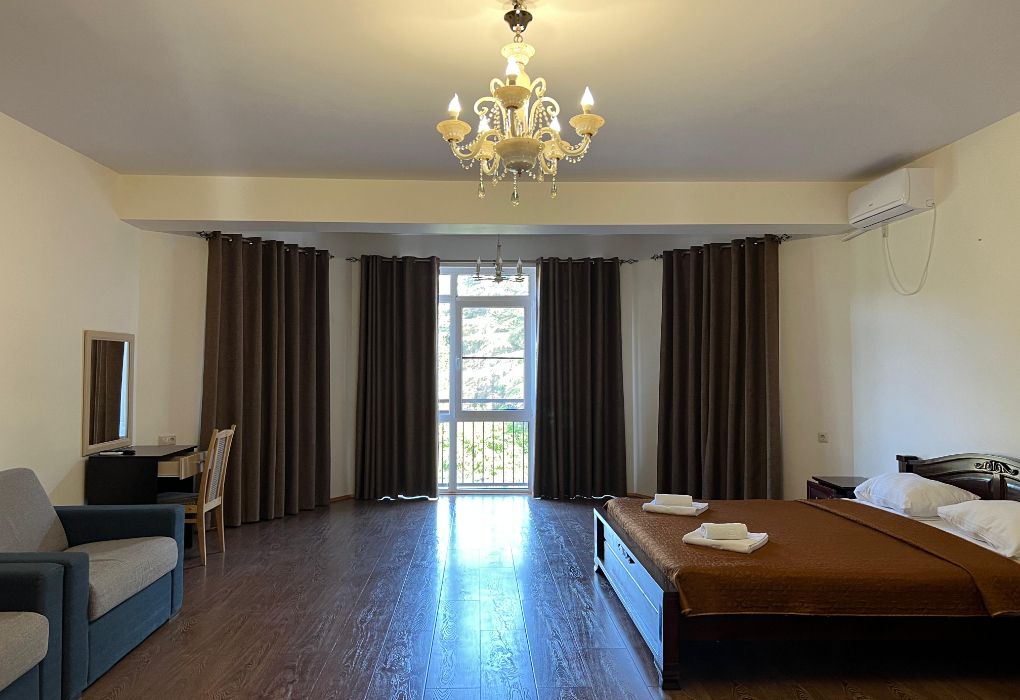 Очень поравился отель и сам регион. Расположение у отеля шикарное, все рядом - находится в начале улицы Кипарисовая аллея, по ней идти к морю, на ней же можно очень вкусно и бюджетно обедать и ужинать. Рядом центр, и можно пройти на улицу, которая ведет в курорт Пицунда.
