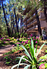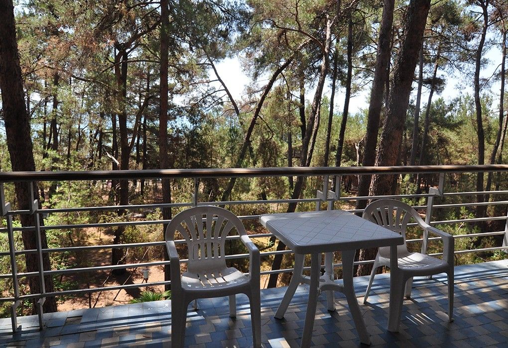 Жилой корпус пансионата включает категории: люкс, полулюкс, стандарт и коттеджи. Основное здание состоит из 5 этажей, есть номера с балконом и без. Каждый оборудован необходимым набором техники для комфортного проживания, в том числе кондиционером. Коттеджи построены в эко-стиле из дерева с собственной террасой. Площадь домиков составляет 30 м2.