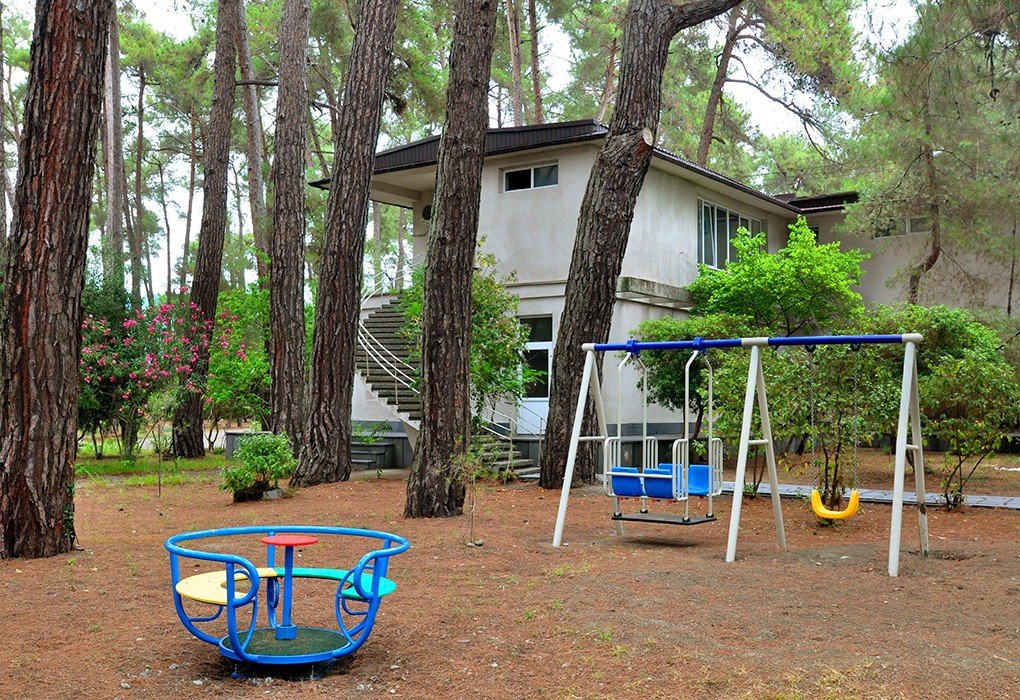 Для проживающих в столовой пансионата ежедневно сервируются по-домашнему сытные завтраки, обеды и ужины. Досуг на территории можно провести за игрой в бадминтон, прогулкой по парковой зоне, а для юных гостей оборудована детская площадка.