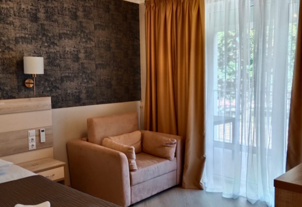 Путешествие в одиночкуВ не сезон - рекомендую!Приезжала поработать и отдохнуть с 8.04.24 по 20.04.24 одна. Всем довольна. В пути со мной связались по телефону и трансфер по прибытию меня уже ждал. Быстро доставили (не сезон, на границе свободно). Заселили быстро. На ресепшене девочки были милы и отзывчивы. Заведующая тоже приятная женщина, которая быстро и участливо продлила мне бронь, т.к. мой туроператор не мог. У меня одноместный стандарт на 5 этаже с выходом на Пицунду (если не хотите слышать музыку от бассейна, то выбирайте эту же сторону). В номере есть ВСЕ, что нужно и балкон замечательный. Wi-Fi работал хорошо на всей территории и даже у моря. Убирали каждый день и средства гигиены докладывали. Мне выдали вафельный халат, который очень пригодился для похода в бассейн. Бассейн замечательный, большой и подогревался. Особым удовольствием было ходить в него поздно вечером. Полотенца и белье меняли вовремя, горничная вообще была очень приветлива (не стоит скупиться на чаевые, заработок у них явно небольшой). Территория ухожена, на текущий момент ведутся работы по подготовке к сезону. Радовало, что море очень близко. Кормили просто, но вкусно. Сотрудники столовой молодцы. На второй неделе моего прибывания случился массовый заезд (около 200 человек пожилых людей) и тогда в столовую стало ходить более проблемно, т.к. толпа без соблюдения очередей атаковала шведский стол))) Полагаю в сезон творится нечто подобное. Некоторая еда заканчивалась и ее больше не докладывали((( Добраться в Пицунду и Гагры можно было на маршрутках или вызвать такси прям с Ресепшена. На территории есть магазинчики, несколько работало в апреле. Милейшая женщина продавец. Алкоголь даже на разлив)) В главном корпусе есть бар, где можно сделать заказ на несложные блюда и напитки. Оставил приятное впечатление. Из процедур я ходила только на массаж в главном корпусе к Саше. (Честно сказать порекомендовать не могу. Отличный дядька по общению, но мне как специалист не зашёл вообще. 1500 за пол часа, а то 25 минут этого явно не стоят. И конечно условие носить с собой на сеанс одноразовую простынь, кот.тебе выдали единожды и кот.ты каждый раз непонятно какой стороной кладешь на многодневно не меняющиеся простыни и полотенце кушетки - это просто крахоборство. За немалую цену массажист ручки бережет и использует то этот всратый пистолет, то банки - которые из обработки имеют лишь несколько пшиков сверху чем то. Мне повезло, что я не брезглива. Пообщавшись с некоторыми пациентами моя уверенность в излишне потраченных средствах укрепилась). Подытожив, скажу что в сезон я бы сюда не поехала - т.к. столовая, лифт, бассейн и лежаки у моря явно не рассчитаны на количество номеров пансионата и будут очереди, нехватка и т.п. К тому же в сезон цена возрастает трижды. В апреле мой номер 3200, с июля по сентябрь 9000. А вот в не сезон - если будет возможность, то вернусь. Хорошего всем отдыха!