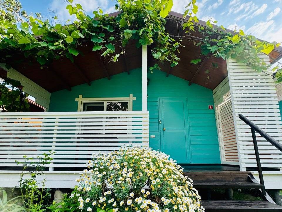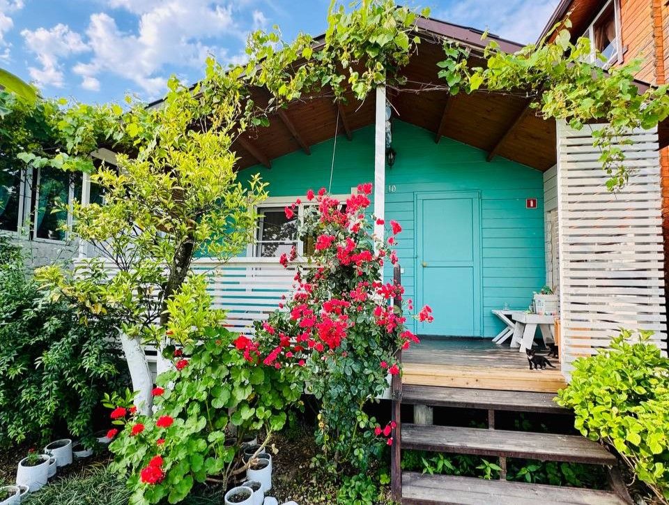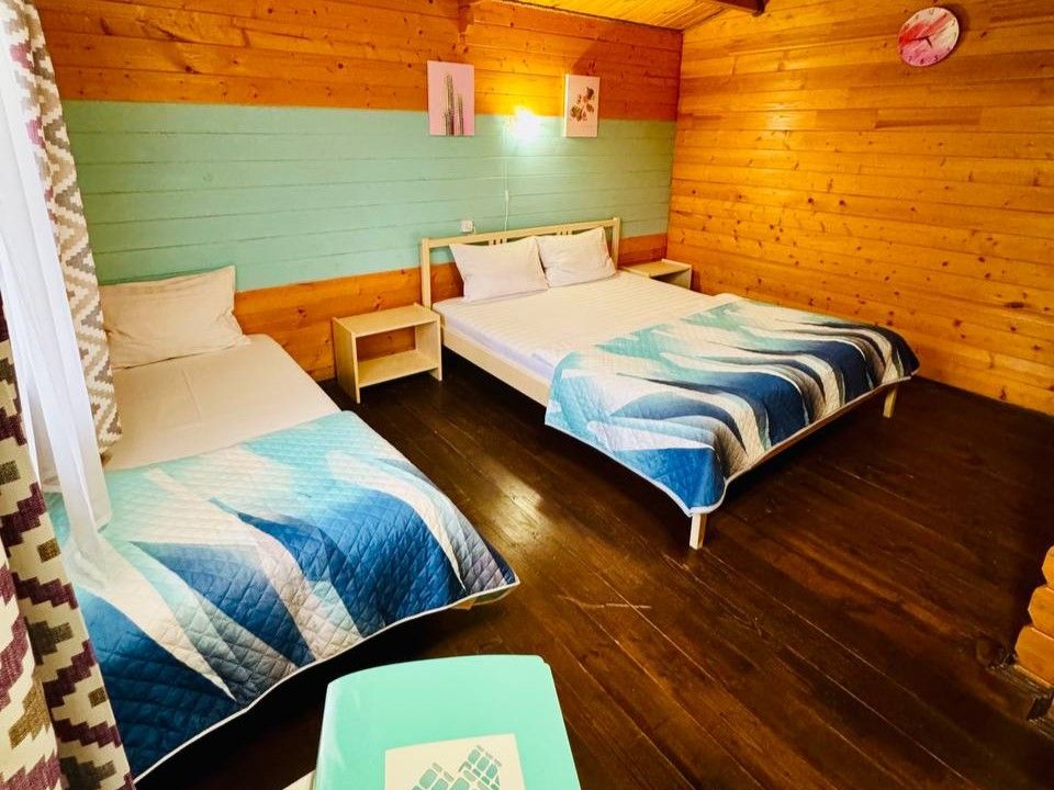 Для размещения предлагается комфортабельный коттедж на 4 человек. Интерьер оформлен в светлых спокойных тонах, использована мебель из дерева. В коттеджах размещены двуспальная и односпальная кровати, кресло-кровать, шкаф, тумбочки, стол, стулья, сушилка для одежды; предусмотрена терраса. Wi-Fi, сплит-система, спутниковое ТВ, холодильник, душ и санузел.