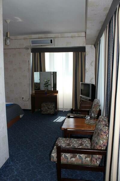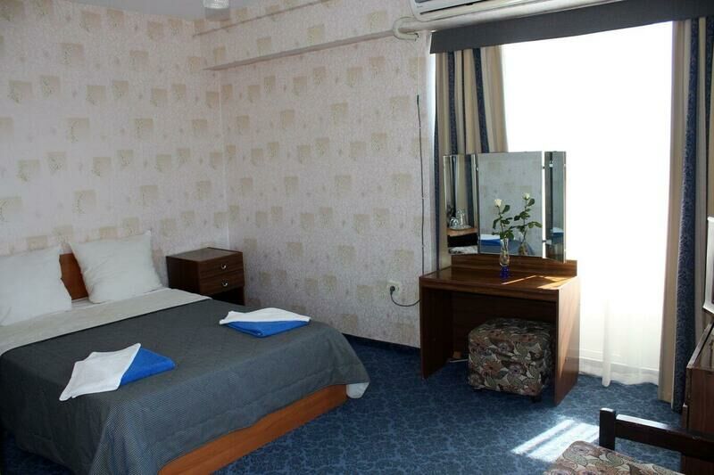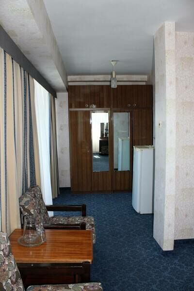 По пансионату. Если придираться, то можно во всём найти недостатки. Но для нас плюсы отдыха перекрыли все минусы. Теперь по порядку. Пансионат, конечно, подубитый. Номерочки по большей части маленькие и скромненькие. Но если выбрать номер самой лучшей категории, за вполне адекватные, кстати, деньги, то будет вам счастье! Мы взяли номер улучшенный люкс, и остались им довольны. Этот номер действительно хорош, просторный и светлый. В номере были все удобства (холодильник, кондей, фен, утюг, чайник, посуда, СВЧ), а главное, в нем был не так давно сделан ремонт. (Все улучшенные номера на 10м этаже привели в порядок и отремонтировали, ниже до ремонта руки пока не дошли). Перебоев с водой и светом не было, разве что иногда ночью. Уборка в номере была регулярная, смена белья- полотенец тоже.