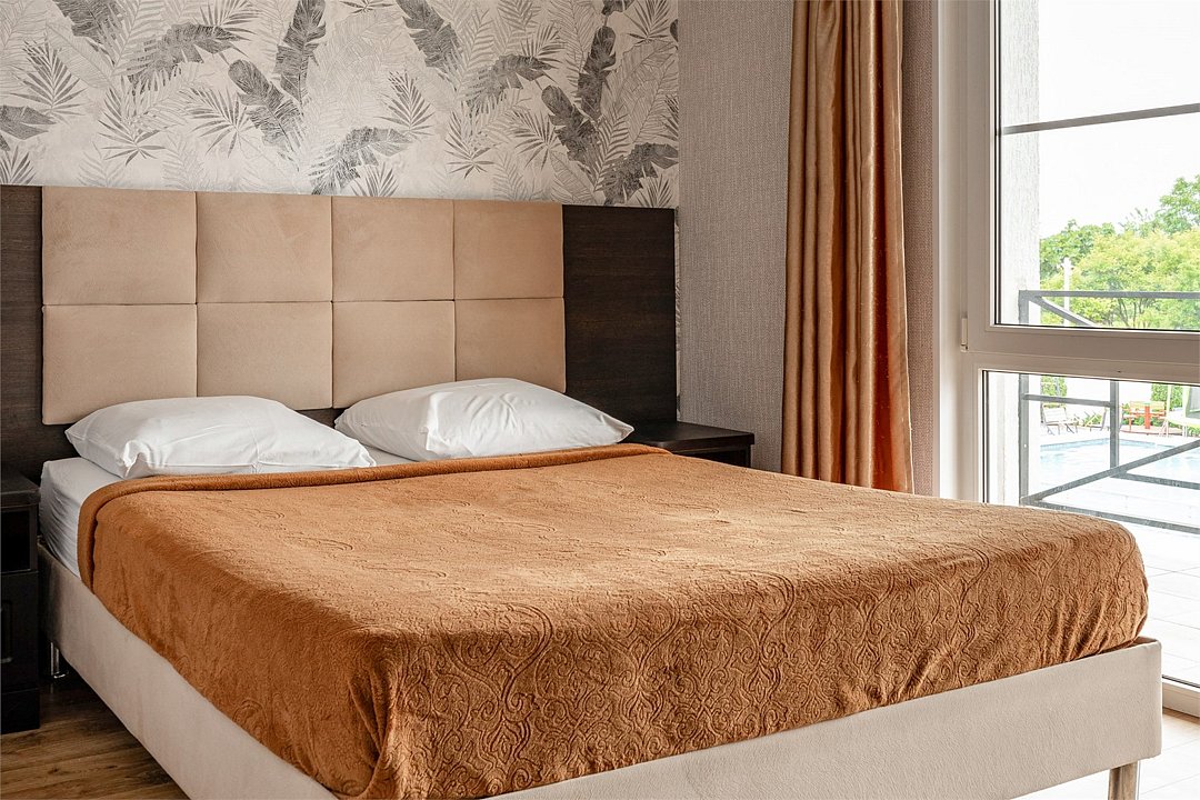 телевизор, Wi-Fi, кондиционер, душевая кабина, санузел, банные полотенца, двуспальная кровать, шкаф для одежды, раковина, тумба, сушилка для белья, мини-холодильник, номер для некурящих, вид на бассейн, вешалки-плечики, зеркало в полный ростВ номере