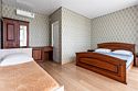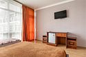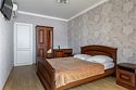 Номер оформлен в классическом стиле с элементами деревянной мебели. В комнате установлена двуспальная кровать с прикроватными тумбами, что обеспечивает удобство во время отдыха. Просторное окно обеспечивает хорошее естественное освещение. Ванная комната оформлена в теплых бежевых тонах и оснащена современной сантехникой. Оснащение номера: Двуспальная кровать Шкаф для одежды Кондиционер Телевизор Санузел с душевой кабиной Зеркало ТумбыУслуги и удобства