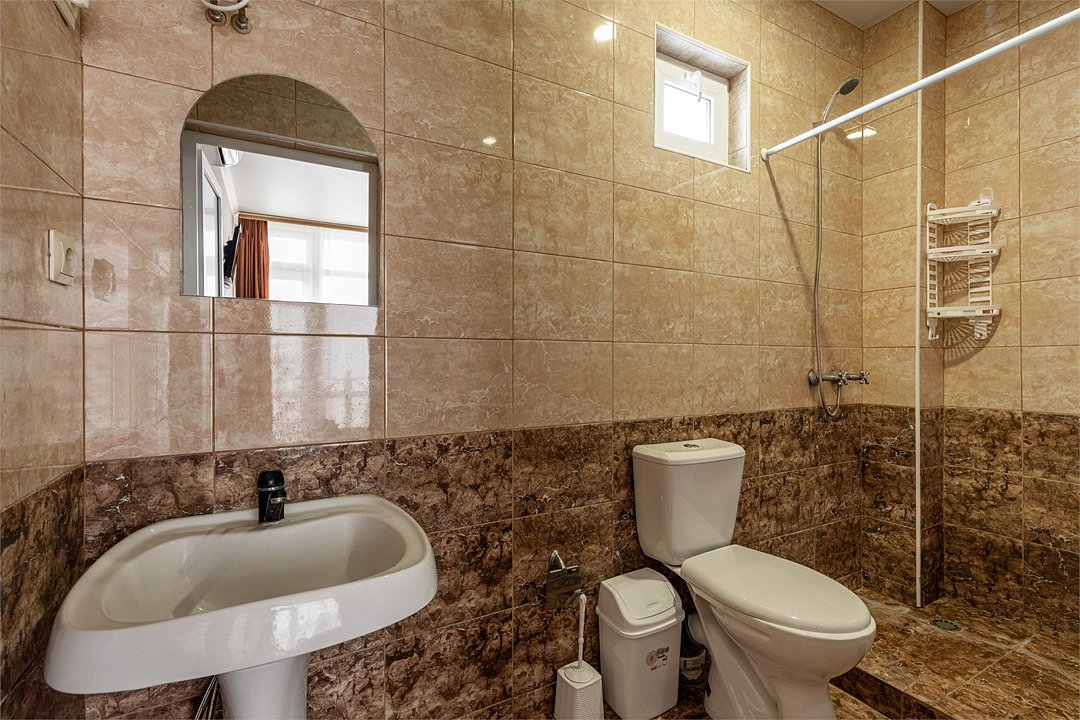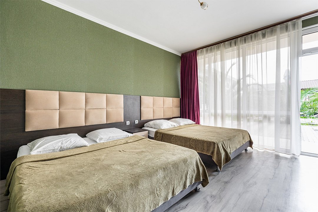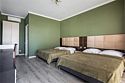 В номере двуспальная кровать и две односпальные кровати, шкаф, тумбочка, телевизор, кондиционер, стул, холодильник. Санузел с душем.Услуги и удобства
