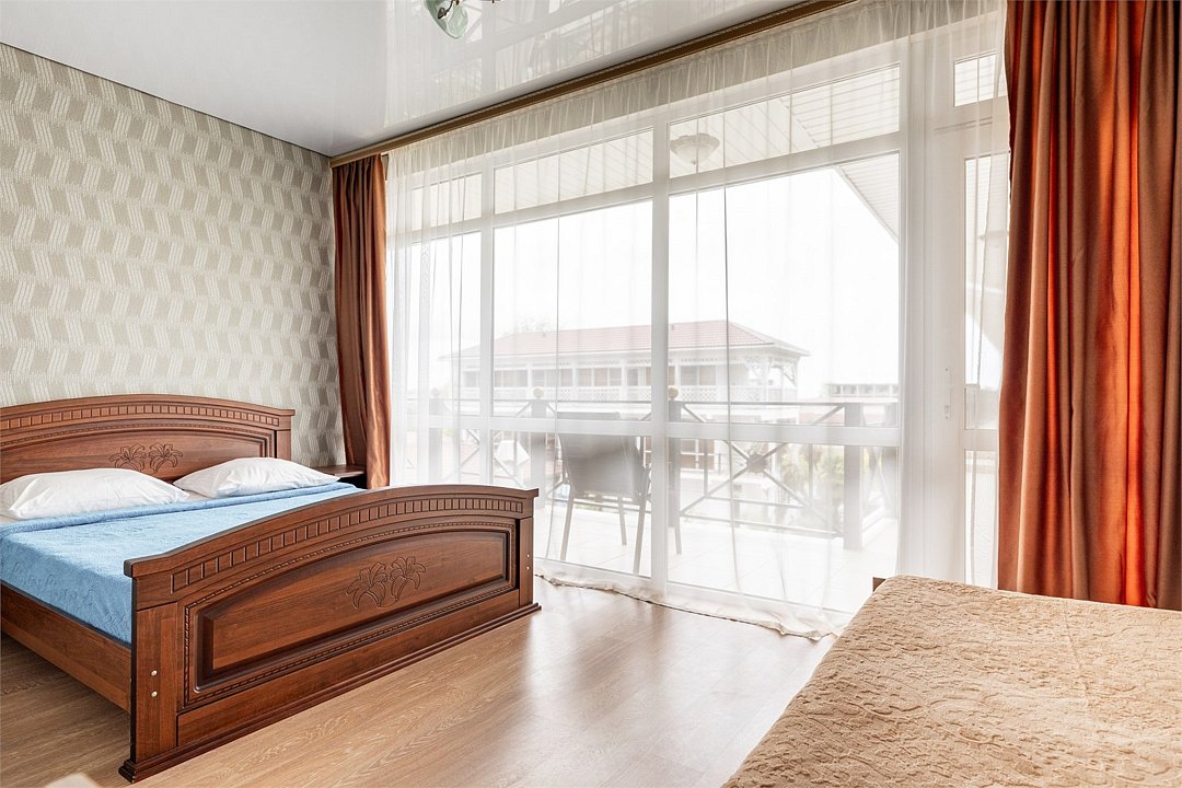 телевизор, Wi-Fi, холодильник, кондиционер, светильник, фен, душевая кабина, санузел, банные принадлежности, банные полотенца, пляжные полотенца, гигиенические средства, косметические средства, балкон, две двуспальные кровати, тумбы, шкаф для одежды, зеркало, звуконепроницаемые стены и окна, обслуживание номеров, унитаз, раковина, косметическое зеркало, питьевая вода, душ, кресло, центральное кондиционирование, вид во двор, паркет, стаканы, стул, стол, тумба, туалетный столик, туалетные средства, туалет, сушилка для белья, мини-холодильник, гостиничная парфюмерия, номер для некурящих, вид на бассейн, холодильный шкаф, уборка номера, вешалки-плечики, мыло, затемняющая штора, зеркало в полный ростВ номере