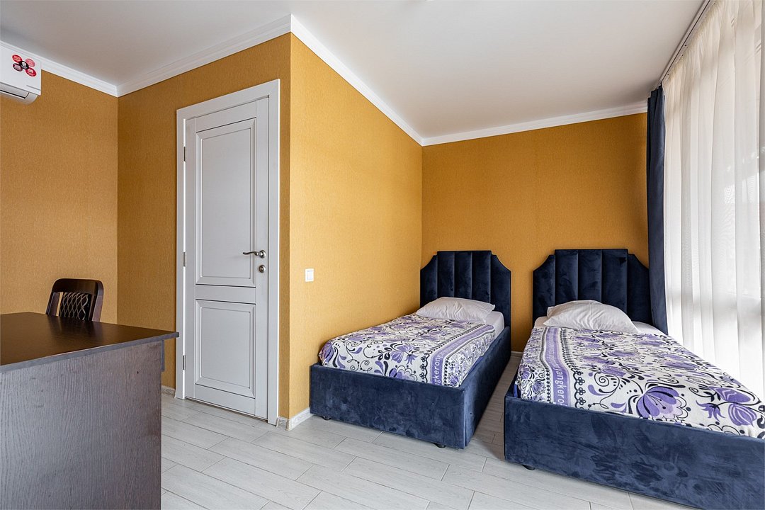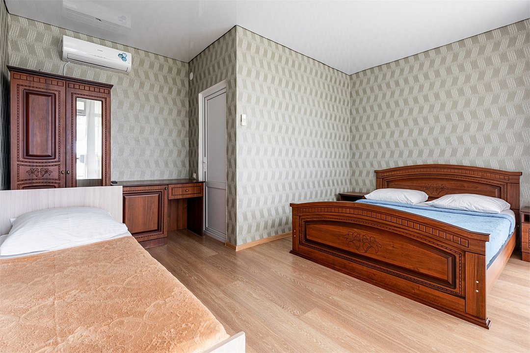 В номере: одна двуспальная кровать и одна односпальная кровать, прикроватные тумбы, шкаф, стол, холодильник, санузел, душ, кондиционер, Wi-Fi, телевизор.Услуги и удобства
