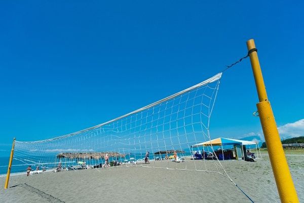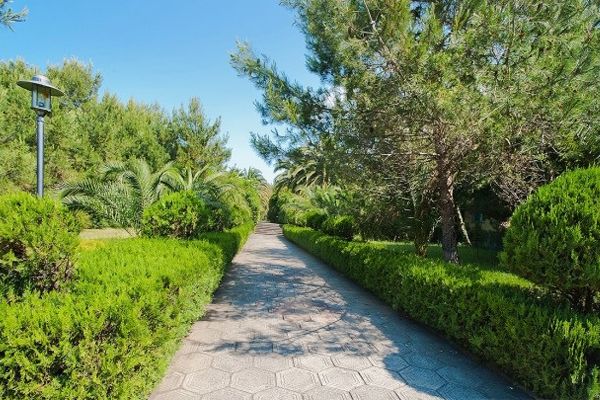 Собственный оборудованный песчано-мелкогалечный пляж, расположенный в 50 метрах от 1 и 2 корпусов и примерно в 3-4 минутах ходьбы от 3 корпуса. На пляже – шезлонги, навесы.