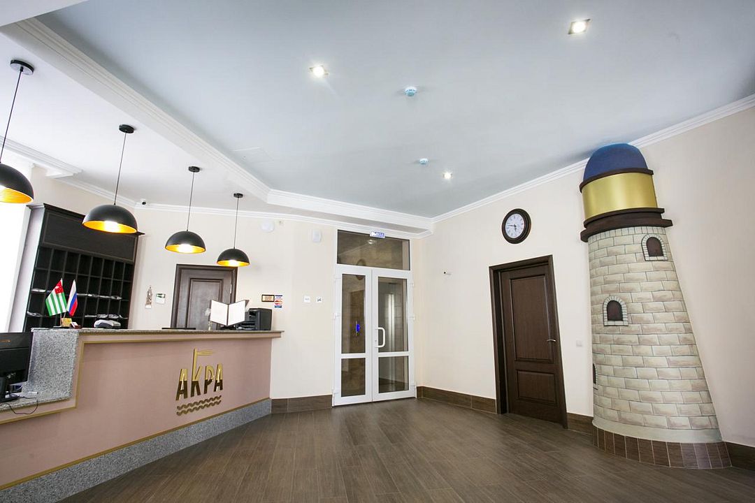 Отель «АКРА» расположен в городе Сухум, в 200 метрах от центрального пляжа Сухума. К услугам гостей экспресс-регистрация заезда и отъезда, номера для некурящих, бар, сад и бесплатный Wi-Fi на всей территории. Гости могут забронировать семейные номера и отдохнуть на террасе. В отеле работает круглосуточная стойка регистрации и экскурсионное бюро, а также предлагаются услуги консьержа.