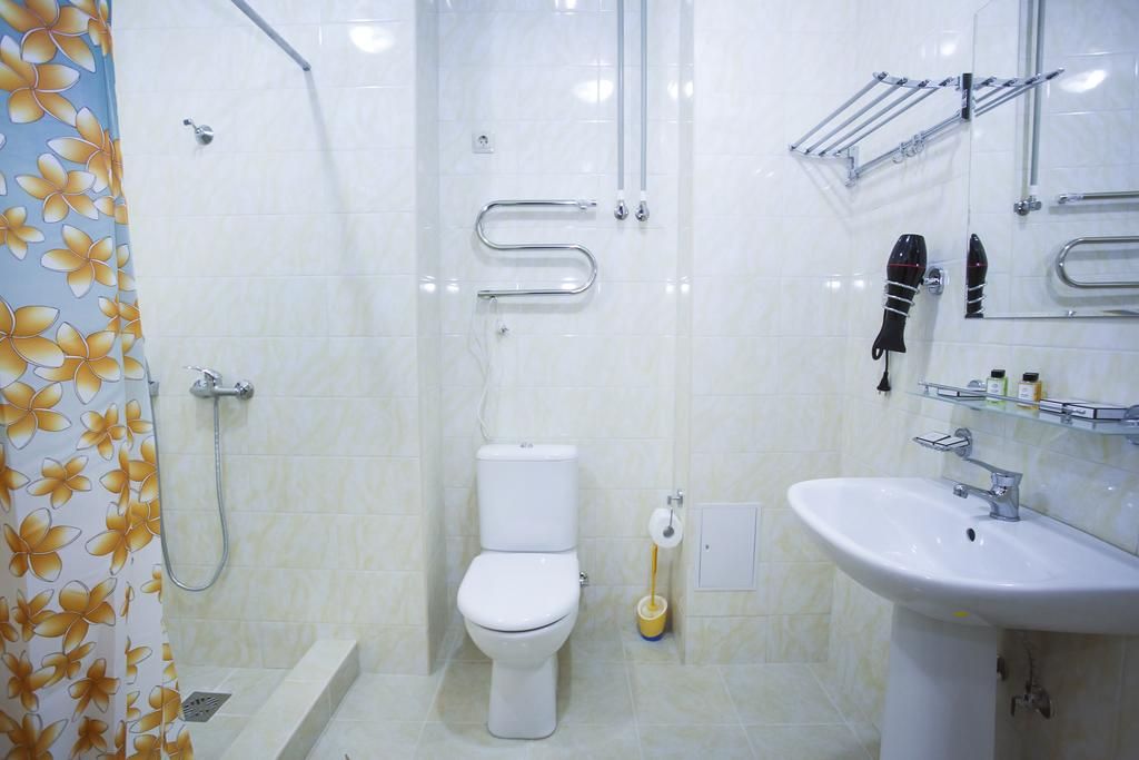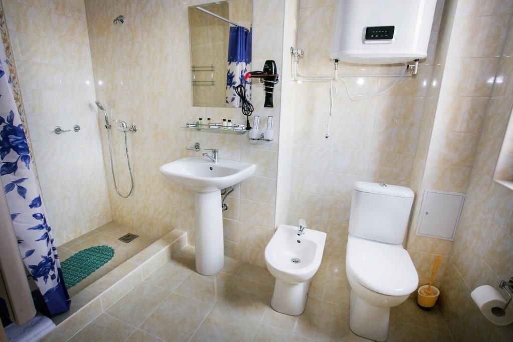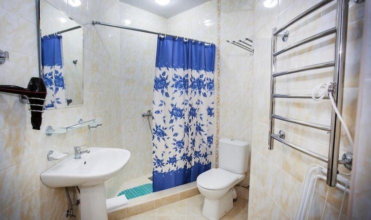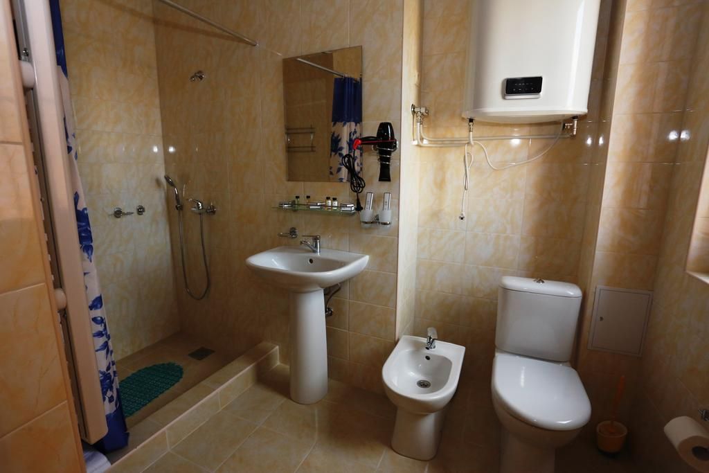 В ванной был бойлер (всегда горячая вода!)! Также в номере был телефон, сейф, холодильник, фен, чайник, чайная станция с пакетиками чая и кофе (!). Гладильные доски и утюг есть на этажах.