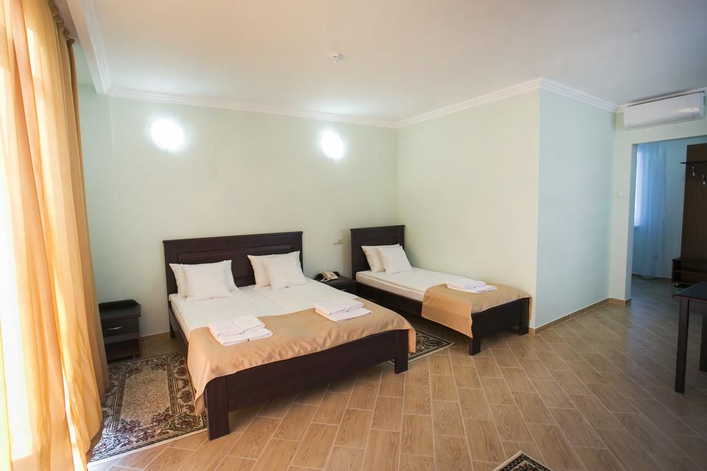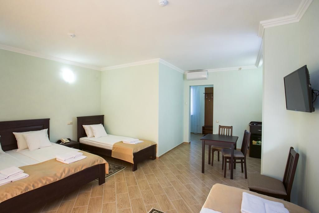 Это новое пятиэтажное здание, всего 33 номера на любой вкус, все с видом на море. До пляжа и набережной 150 метров, рядом находится центральный городской рынок и остановки общественного транспорта. Завтрак входит в стоимость, заказной - 5 вариантов. Есть летнее кафе, небольшая стоянка.