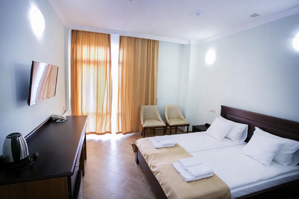 июнь 2022 г.Замечательный отдых в АбхазииОтдыхали в Абхазии в июне м-це. Жили в Сухуме в отеле Акра. Наверное, лучший отель Сухума: современный новый корпус, очень хорошие чистые номера, в номерах чистое белье, полный комплект банных полотенец и принадлежностей для душа, которые регулярно пополняются, большая ванная комната. В номерах тихие кондиционеры Midea, которые отлично работают. По запросу выдадут чайник в номер. На каждом этаже есть гладильная доска с утюгом. Также есть бесплатные пляжные полотенца.Всему этому могут позавидовать многие европейские 4ки ! И замечательный отзывчивый персонал, управляющий отелем ! Рекомендую на все 100 !