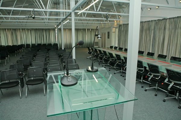 Выделена зона для проведения конференций. Зал оборудован специальной аппаратурой. Комната вмещает до 100 человек.