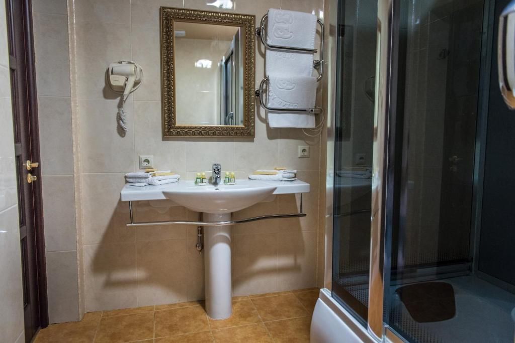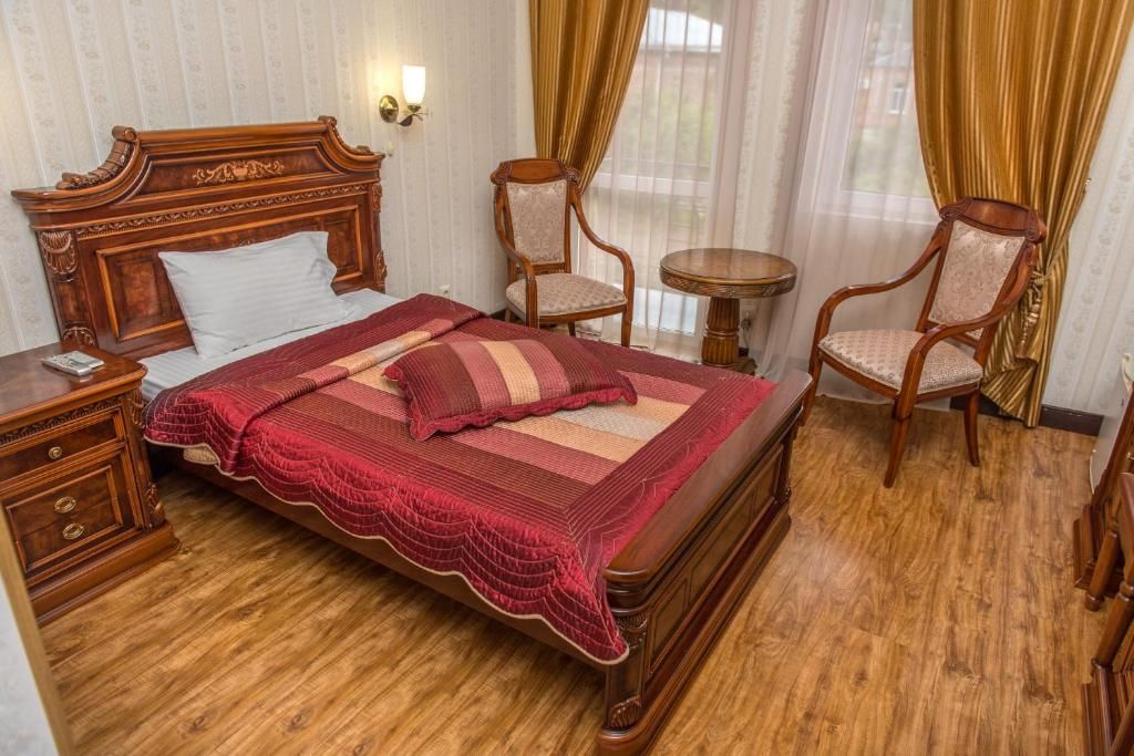 Просторные стандартные номера оснащены современной техникой. Здесь есть телевизор, фен, кондиционер, банные принадлежности, шкаф, тумба, письменный стол, диван. Каждая комната оформлена в оригинальном стиле. Везде пахнет приятным ароматом. Ежедневно проводится уборка со сменой белья.